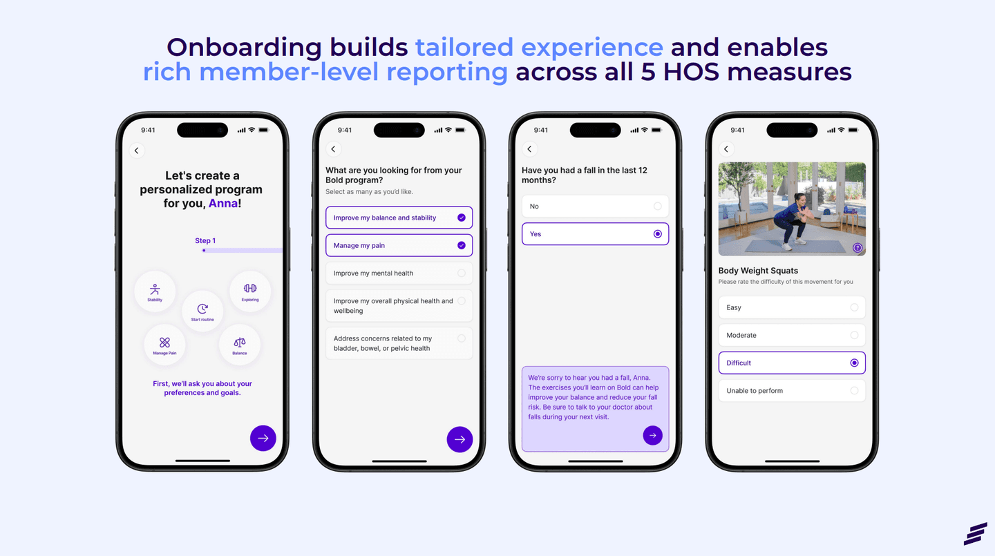 Lack of movement touches both triple-weighted measures derived from the HOS: Improving or Maintaining Physical Health and Improving or Maintaining Mental Health. A proven arthritis exercise program like Bold’s helps close these gaps by supporting daily movement and behavior change in the home.
