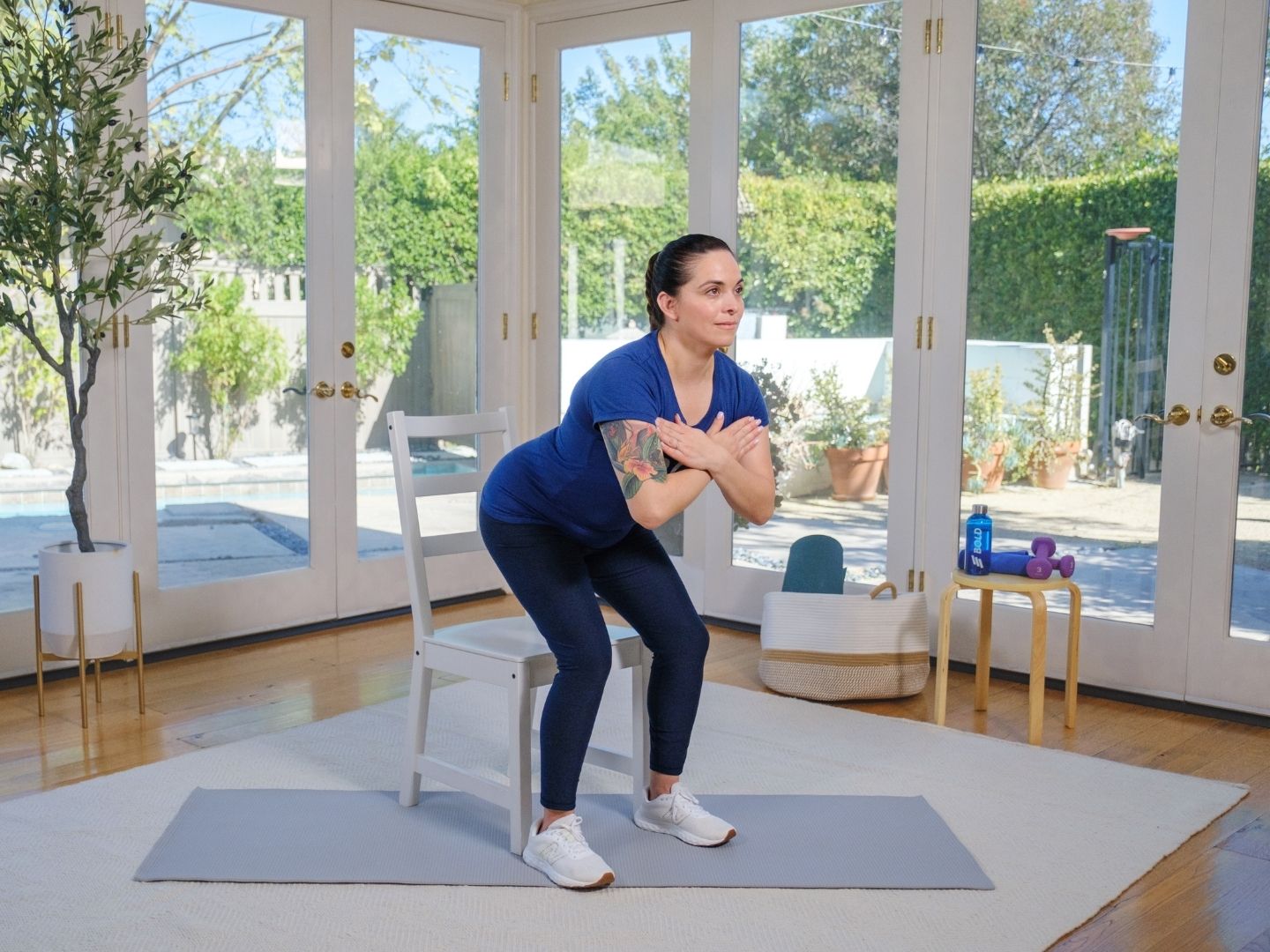 Chair squats can fit into any number of different workout routines, such as lower-body workouts, full-body workouts, and seated workouts. In fact, you can find lots of routines to follow along with on the Bold exercise platform that include chair squats!
